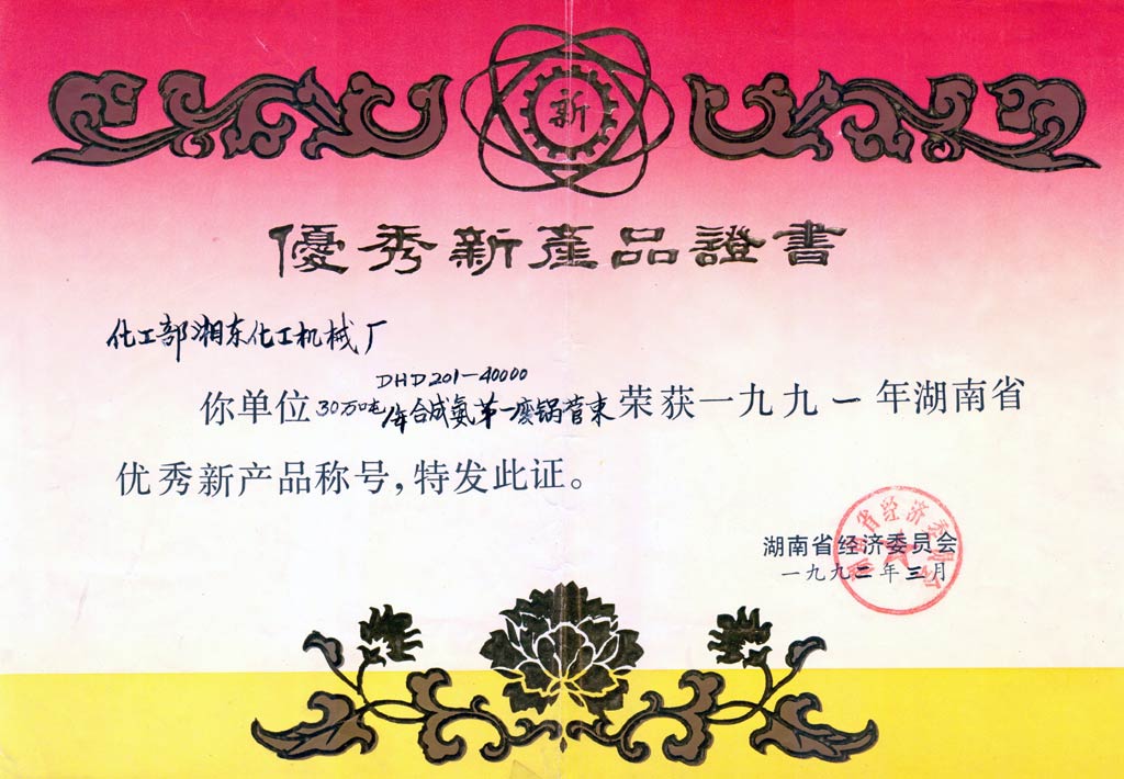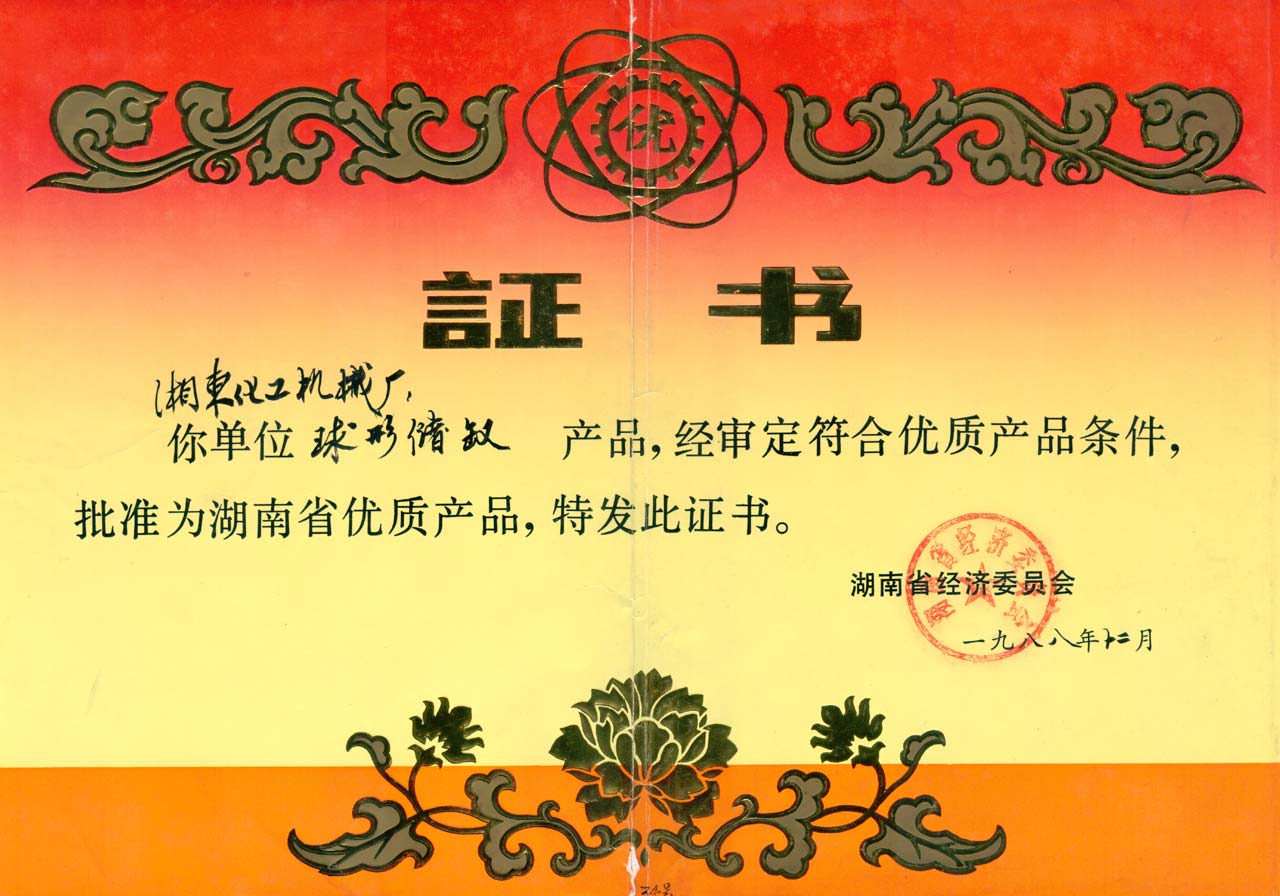 球形貯罐優質產品證書