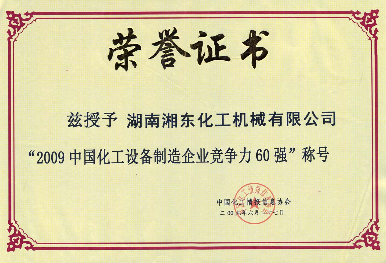 中國化工設備制造企業競爭力60強