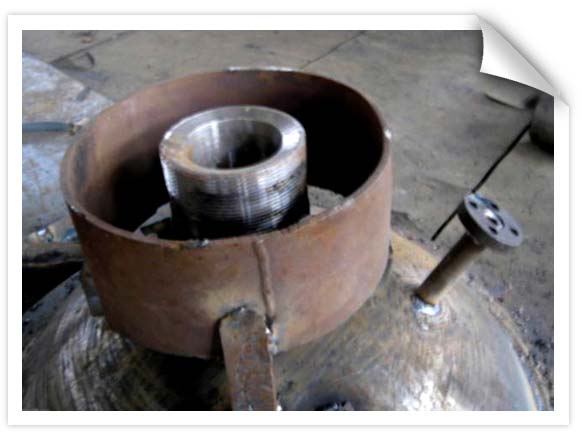 我公司生產的設備有很多封頭的頂部都焊有加工好帶螺紋的接管,因螺紋凸出在外,在生產中,稍不注意,就會把螺紋碰壞,把接管碰彎,造成報廢,而導致返工。如何保護接管和螺紋,已成為生產中的一道工序,不銹鋼分廠要求職工在生產中嚴格按照生產紀律的有關規定進行生產,在焊有螺紋接管或焊有接管的部位,外加點焊一個凸圈,高于接管,加以保護,這樣以來,既保障了生產進度,也確保了產品質量,取得了一舉兩得的好效果。