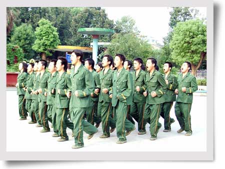 圖為新近招聘的第六批三十余名青工在進(jìn)行入廠前軍訓(xùn)。