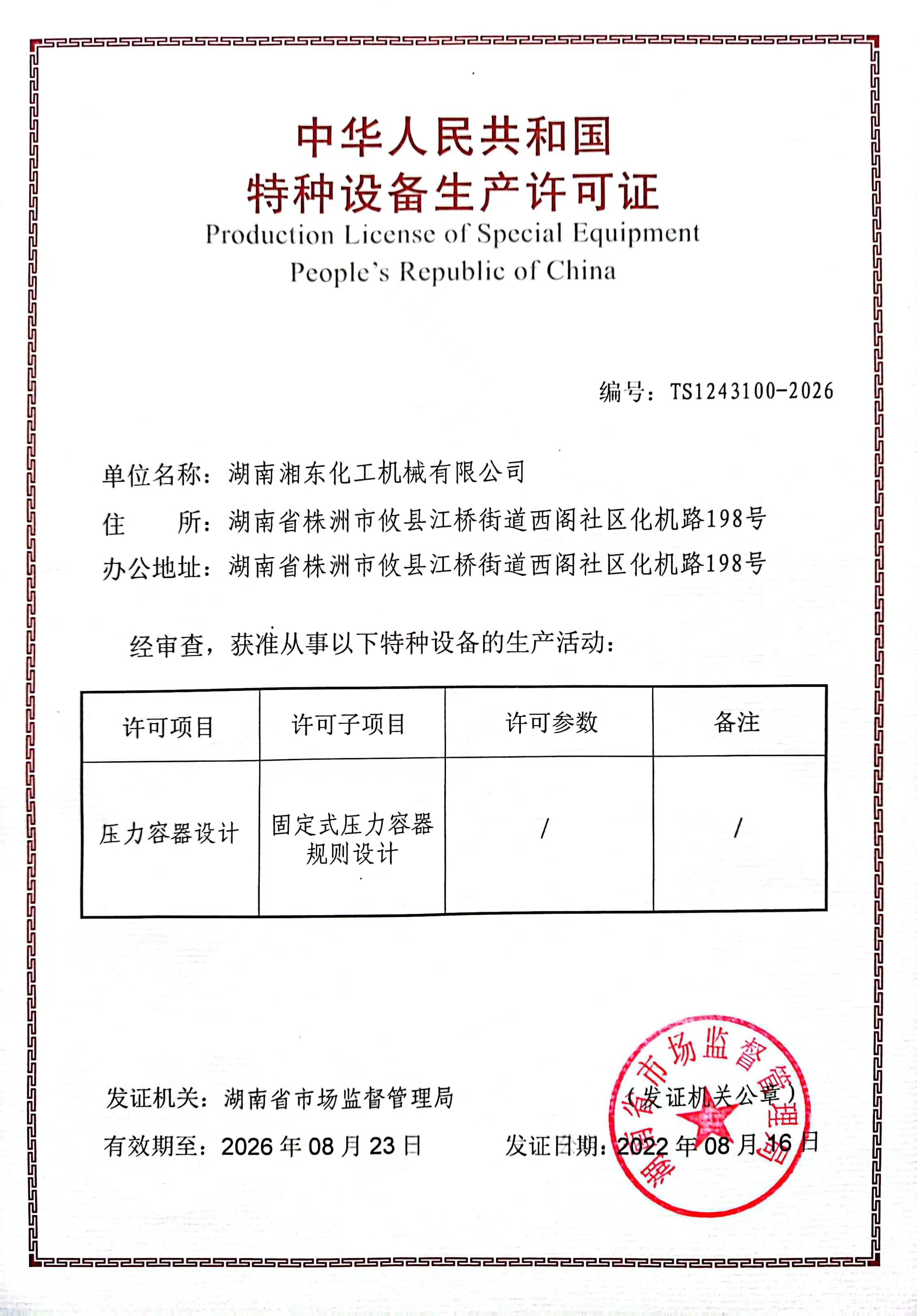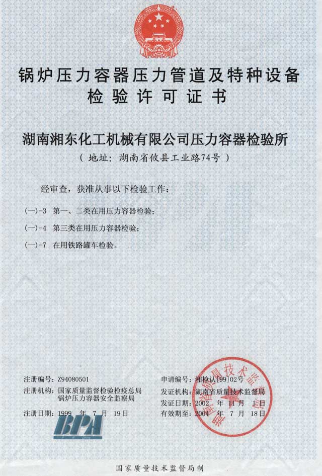 壓力容器檢驗許可證